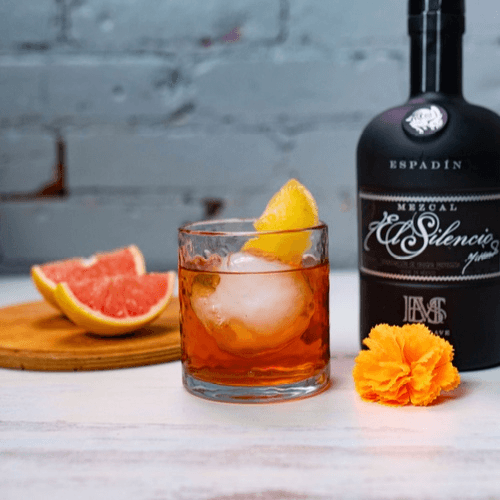 Mezcal + Dolin Sweet Vermouth+ Aperol+ Orange Twist