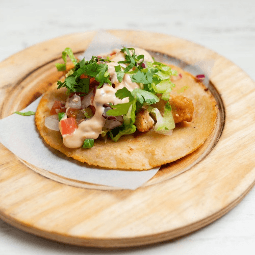 2 Seafood Tacos with Rice and Beans Opcions: Mahi Mahi - Shrimp