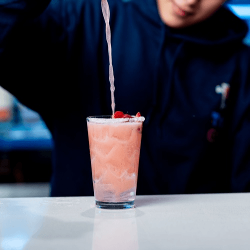Basil and strawberry Infuse Agave, House Lime Mix, Orange Liquor, Fresa.