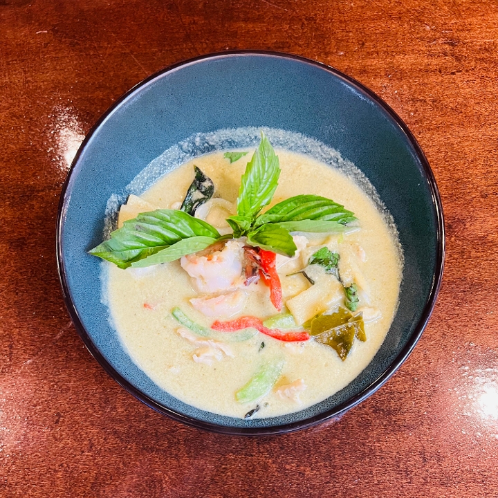 Chili green curry paste / coconut milk / bamboo shoot / red – green pepper / basil served with Jamine rice