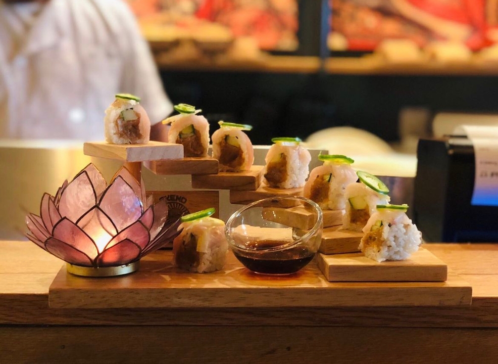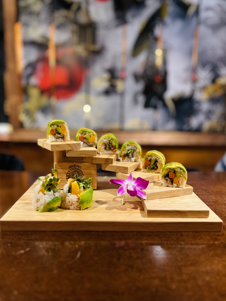 Inari / cucumber / avocado / oshiko / kampyo / shitake topped with avocado / sesame / miso dressing