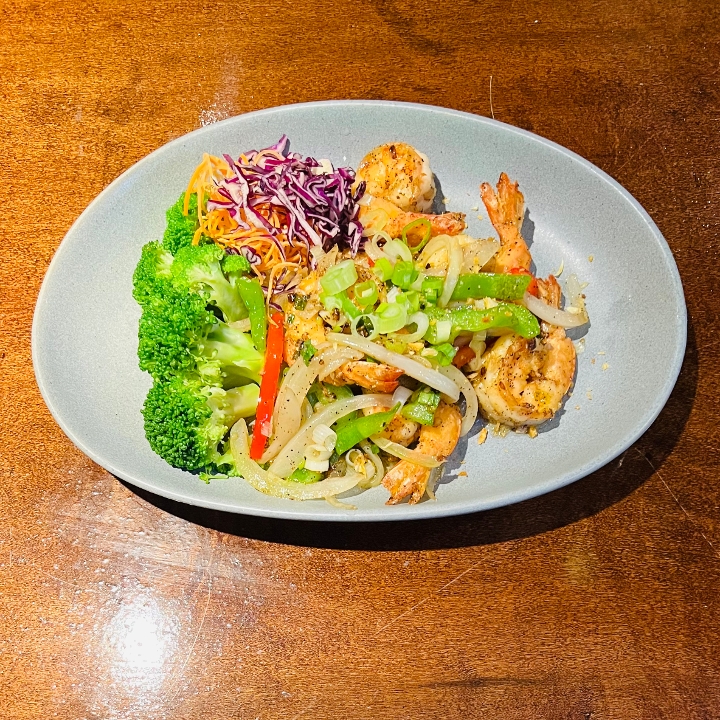Dry stir-fried lightly battered shrimp / broccoli / garlic / onion / scallion / black pepper served with Jamine rice