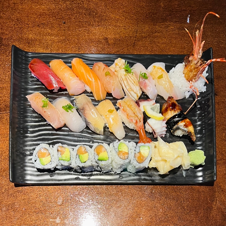 14 pieces nigiri / 24 pieces sashimi / 6 pieces of classic roll served with 2 miso soup