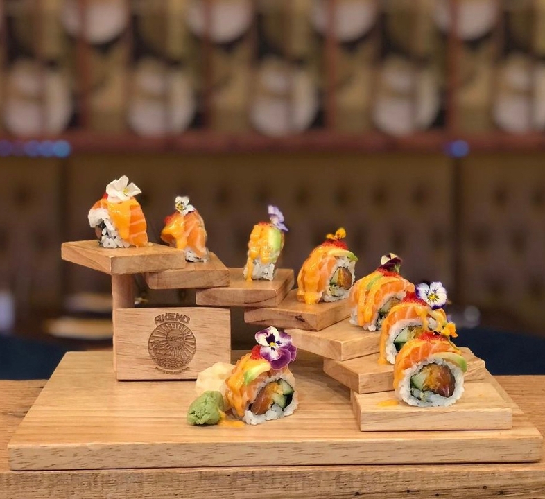 Imitation crab / avocado / cucumber topped with tuna / salmon / white fish / shrimp / avocado