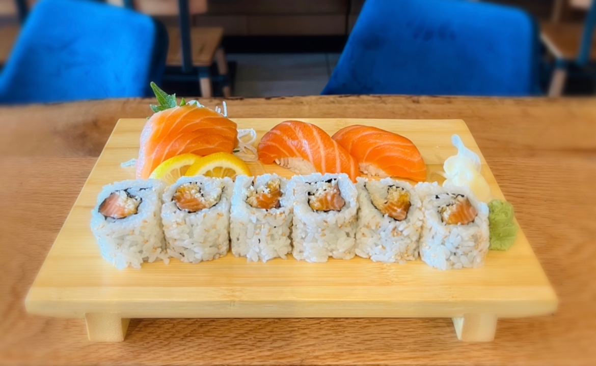 8 pieces of nigiri assortment / 6 pieces of classic roll served with miso soup