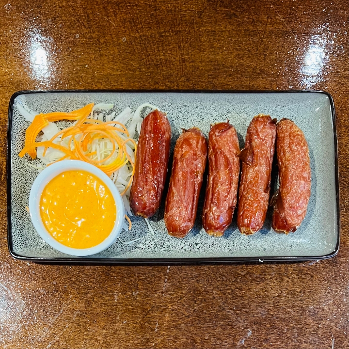 Fried Japanese pork sausages / spicy mayo / spicy mustard