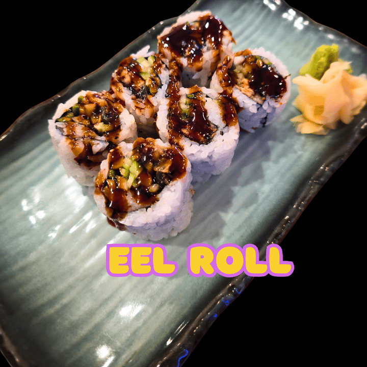 Imitation crab / avocado / cucumber topped with broiled freshwater eel / avocado / eel sauce