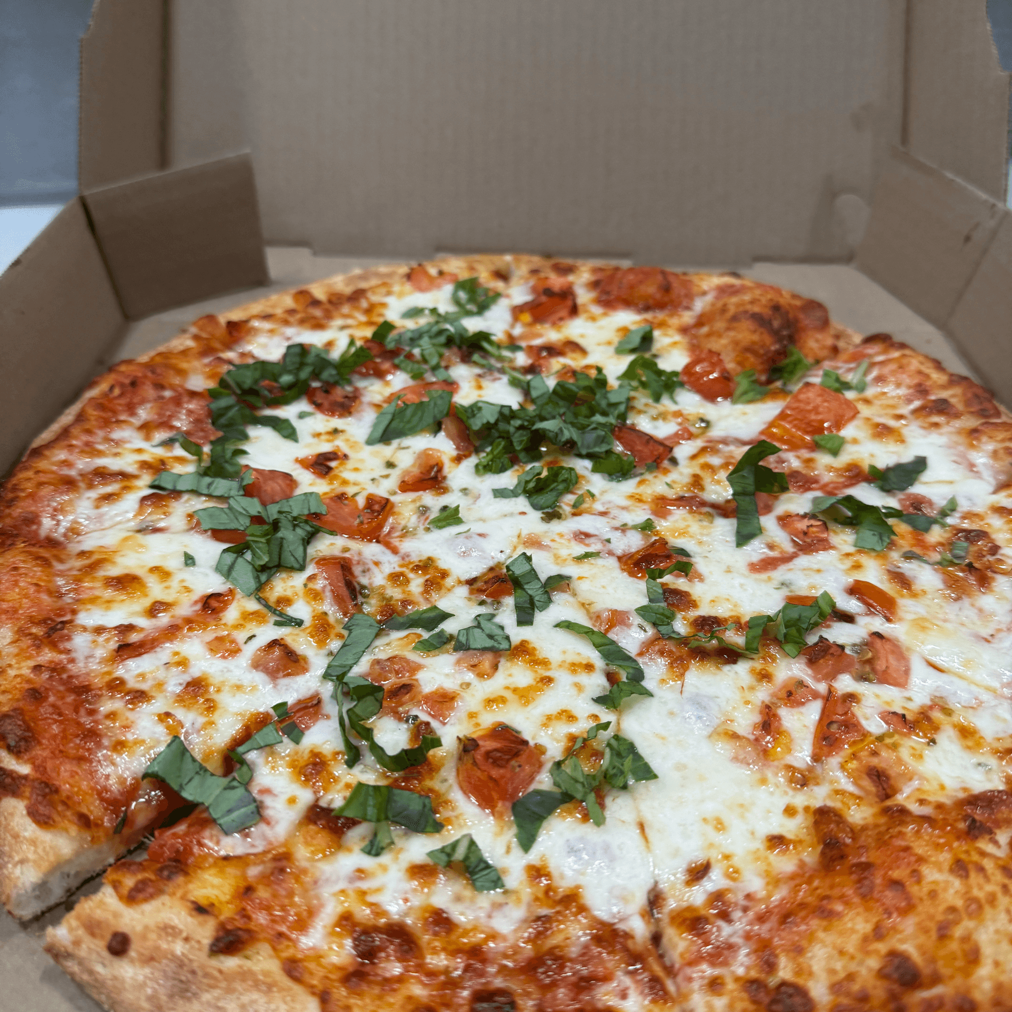 Italian fresh dough, garlic, blend mozzarella, provolone & cheddar cheese. Our secret sauce and topped with oregano