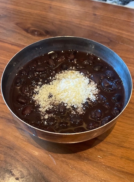 Three enchiladas de pollo, gratinated Mexican cheese, creamy salsa verde, crema, romaine lettuce, cotija cheese, side of pinto beans