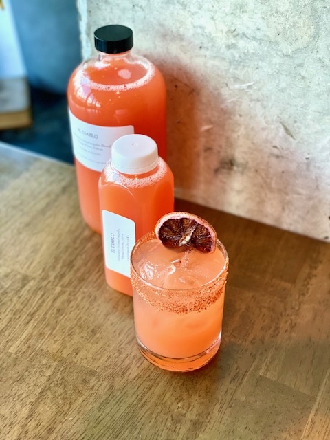 blood orange and habanero flavored - all of our cocktails come with salt and dehydrated fruit.