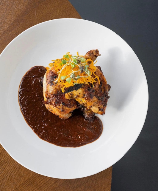 Tres chiles broth, grilled chicken adobo, crispy tortilla strips, crema, chile pasilla negro, queso cotija