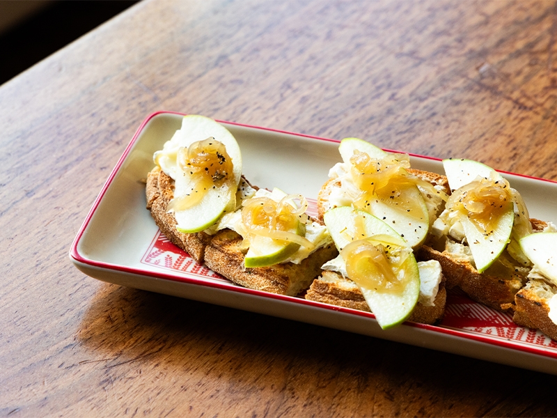 Brie, crisp apple, and our sweet, caramelized onion preserves atop our scratch-made, grilled ciabatta.