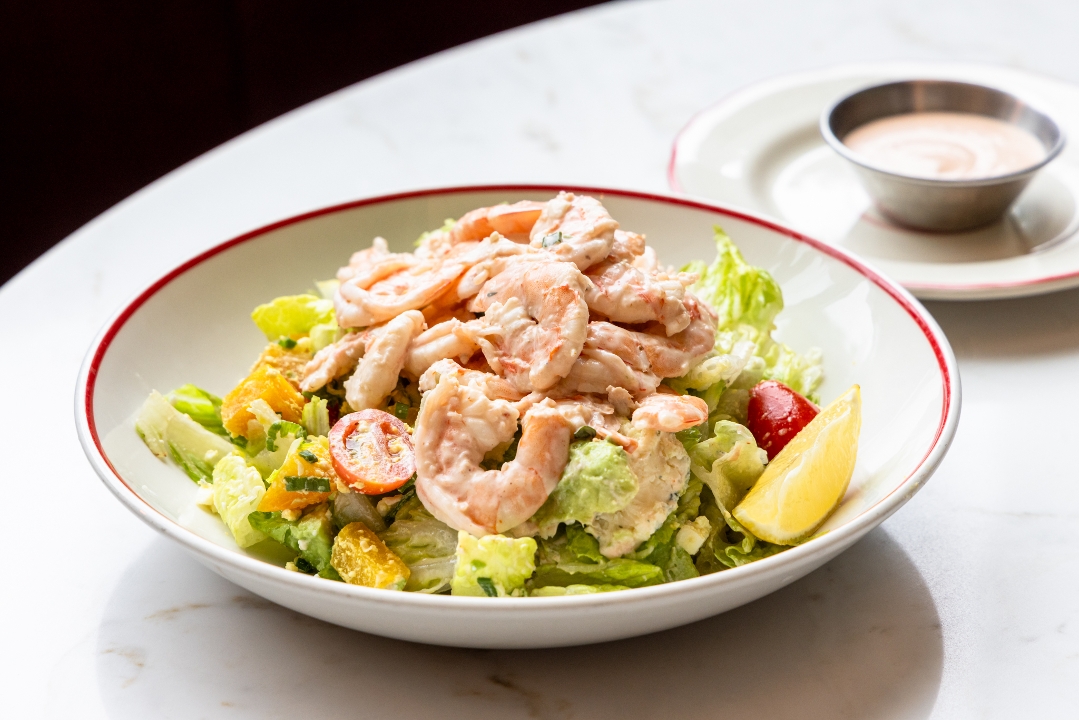A classic cobb salad with a twist. Romaine lettuce tossed with fresh tomatoes & avocado, minced hard boiled egg, creamy Danish blue cheese crumbles, golden beets, green onion, and shrimp. Served with our lemon vinaigrette and house Louie dressing on the side for dipping to create the perfect bite.