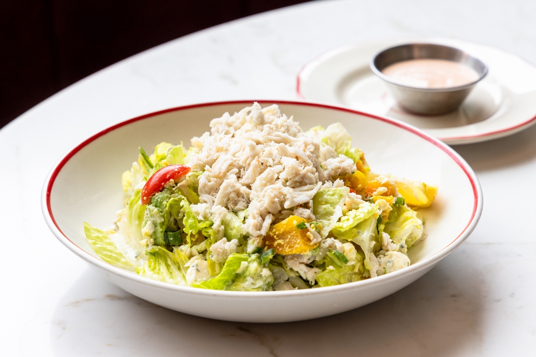 A decadent and beautiful take on a classic cobb salad. Romaine lettuce tossed with fresh tomatoes, avocado, minced hard-boiled egg for some texture, creamy Danish blue cheese crumbles, golden beets, green onions, and lump crab. Served with our lemon vinaigrette and house Louie dressing on the side for dipping to create the perfect bite.