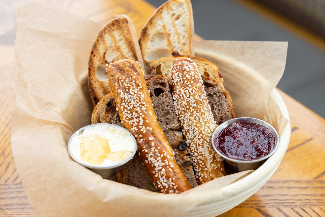 Our soft, house-baked pretzels served with signature dips: pimento cheese, sour cream & onion, and BBQ mustard.