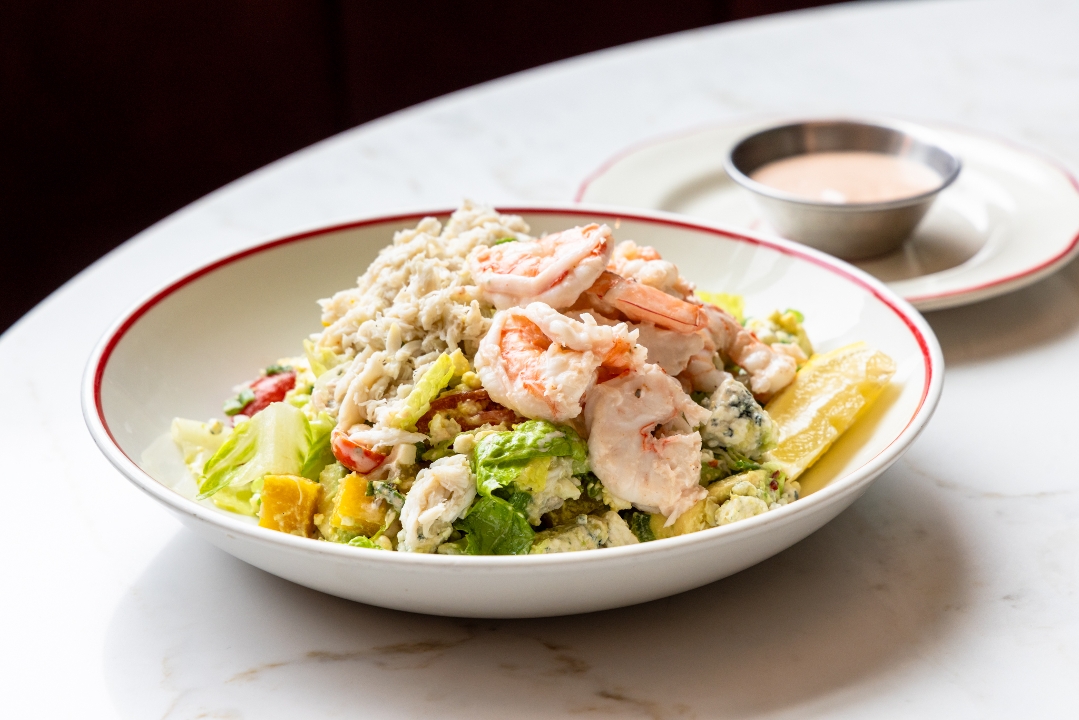 A classic cobb salad with a twist. Romaine lettuce tossed with fresh tomatoes & avocado, minced hard boiled egg for some texture, creamy Danish blue cheese crumbles, golden beets, green onion, lump crab & shrimp. Served with our lemon vinaigrette and house Louie dressing on the side for dipping to create the perfect bite.
