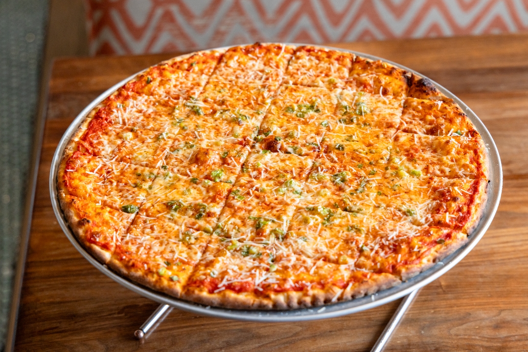 Topped with our red sauce, mozzarella, parmigiano reggiano, pecorino romano, and pepperoni.