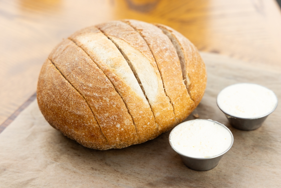 Sweet & savory cornbread is served with North Dakota honey butter sprinkled with J.Q. Dickinson salt.