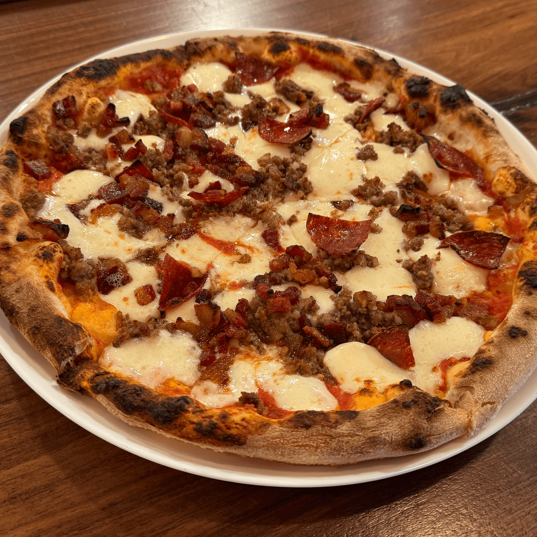 House Tomato Sauce, House Blend, Pepperoni, Baker's Virginia Country Bacon, Italian Sausage, Meatball