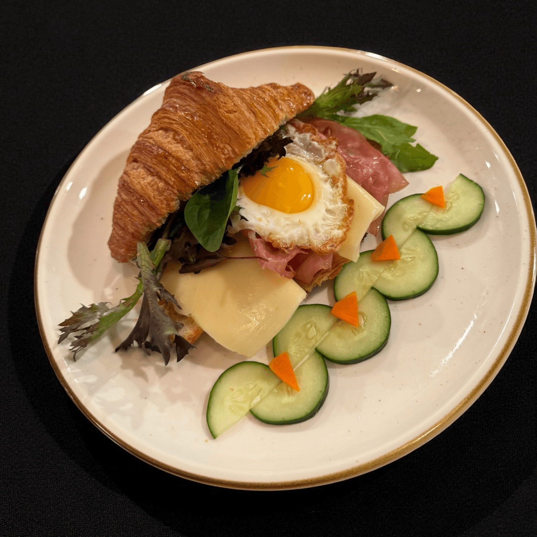 Sunny side Egg, Virginia Country Ham, Provolone cheese on a croissant