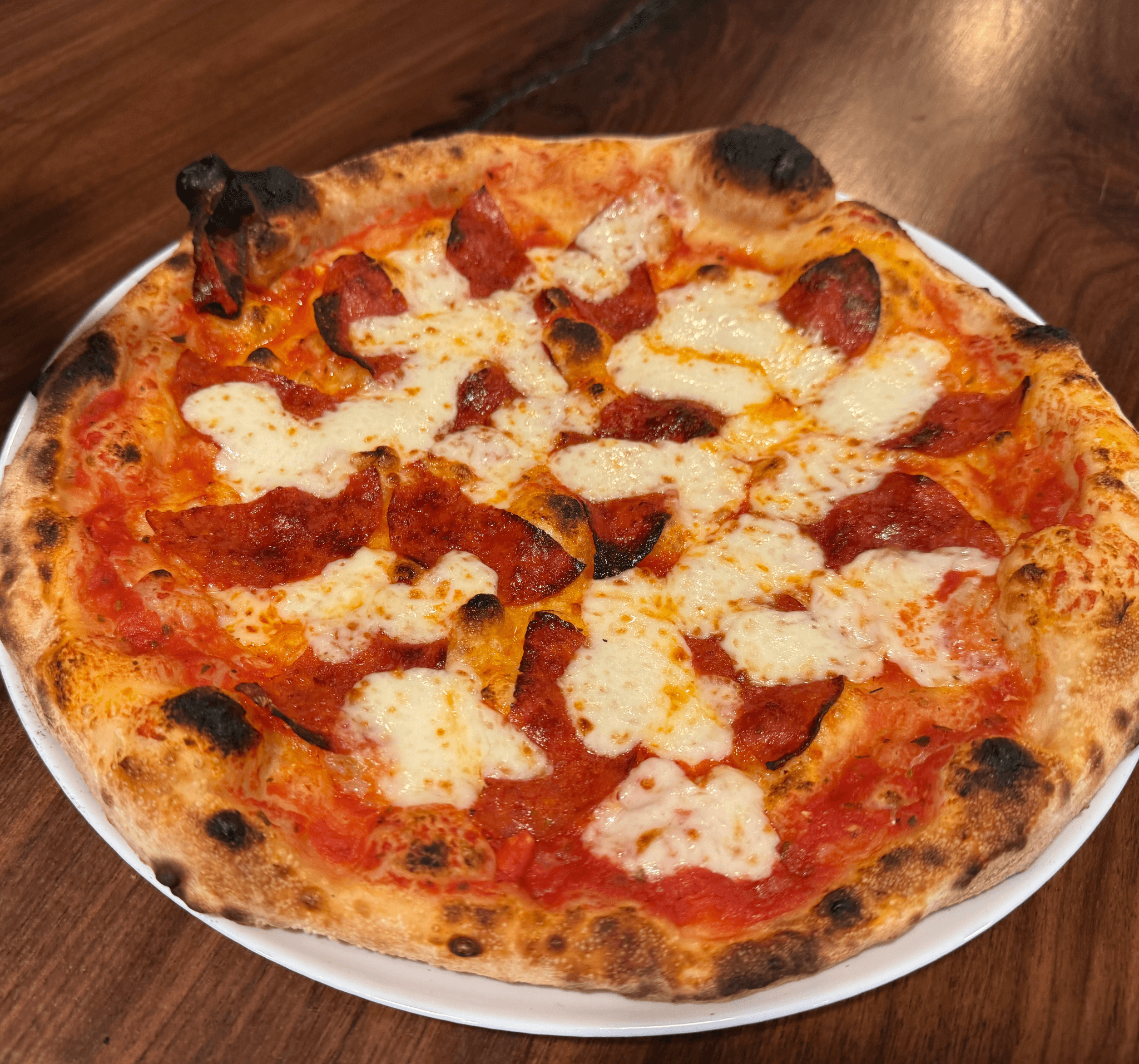 House Tomato Sauce, Fresh Mozzarella, Pepperoni , Chorizo Hot Honey.