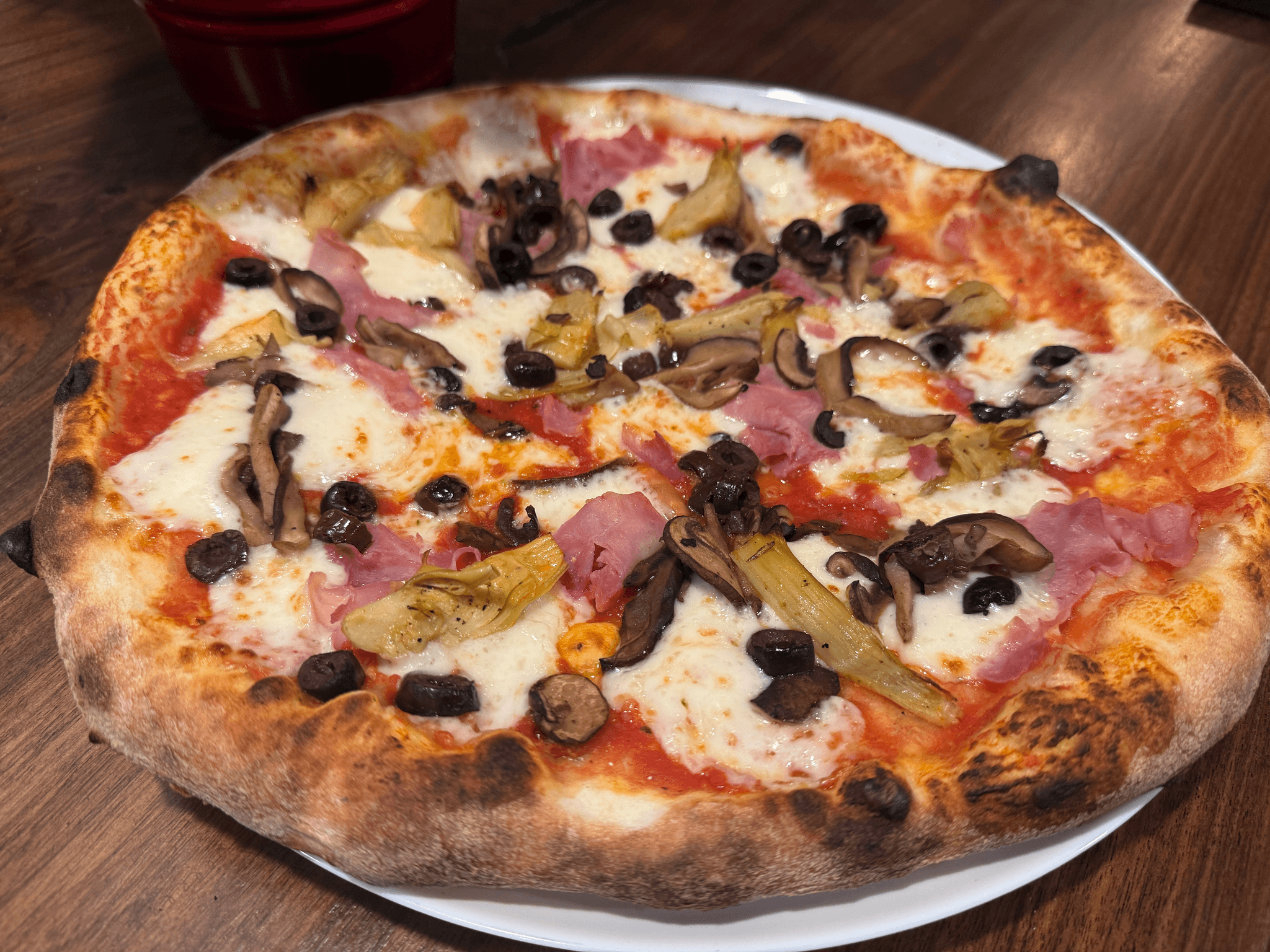 White Sauce, Fresh Mozzarella, Brie Cheese , Grana Padano, Mixed Mushrooms, Truffle Oil.