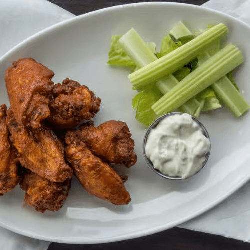 Choose from T.H.S., BBQ, garlic Parmesan, sweet chili, Old Bay or Mumbo sauce served with Gorgonzola dipping sauce, celery