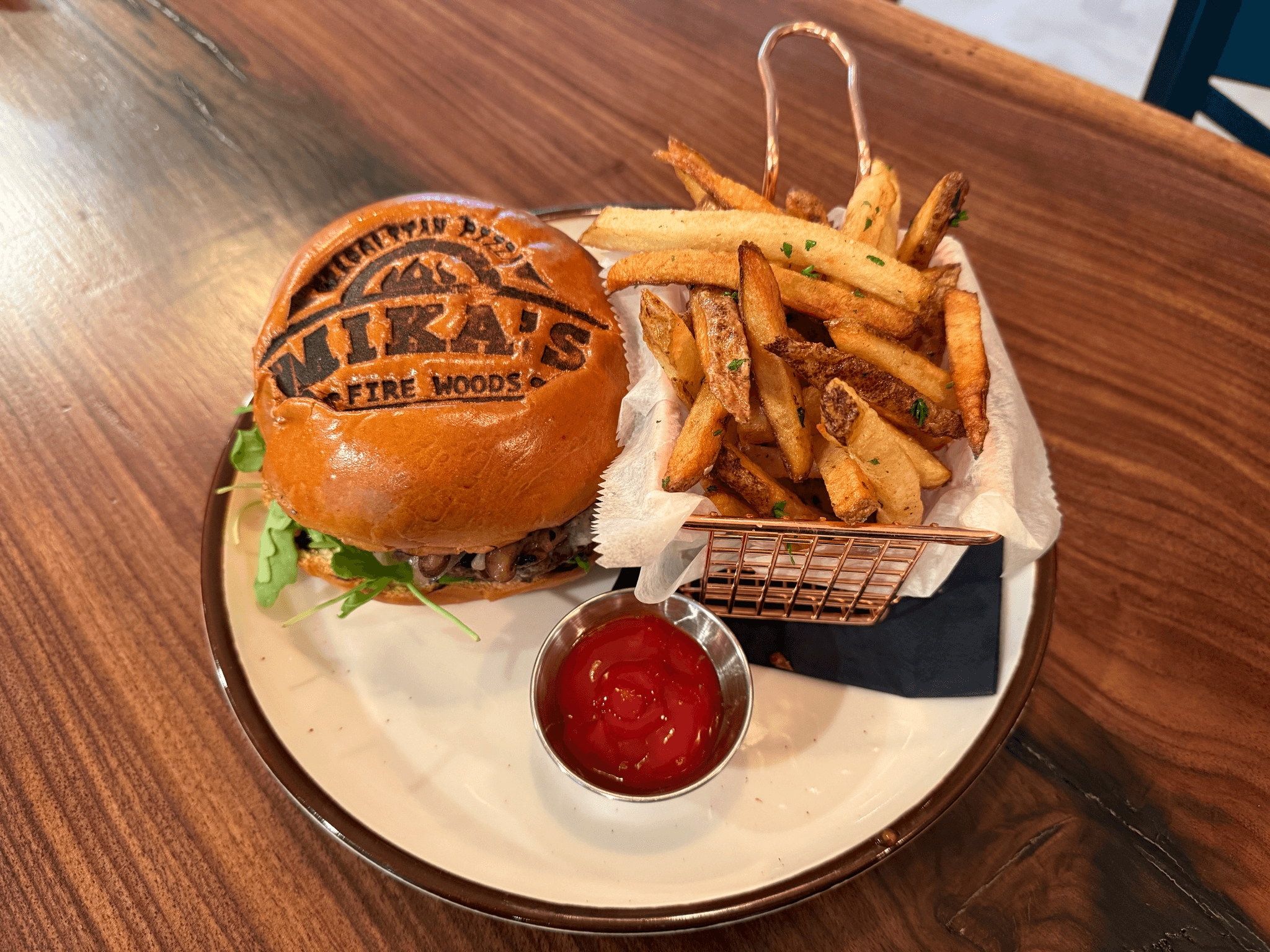 Brioche Roll, Beef, Provolone Cheese, Roasted Onion, Arugula, Tomato, Mushroom, Balsamic Glaze