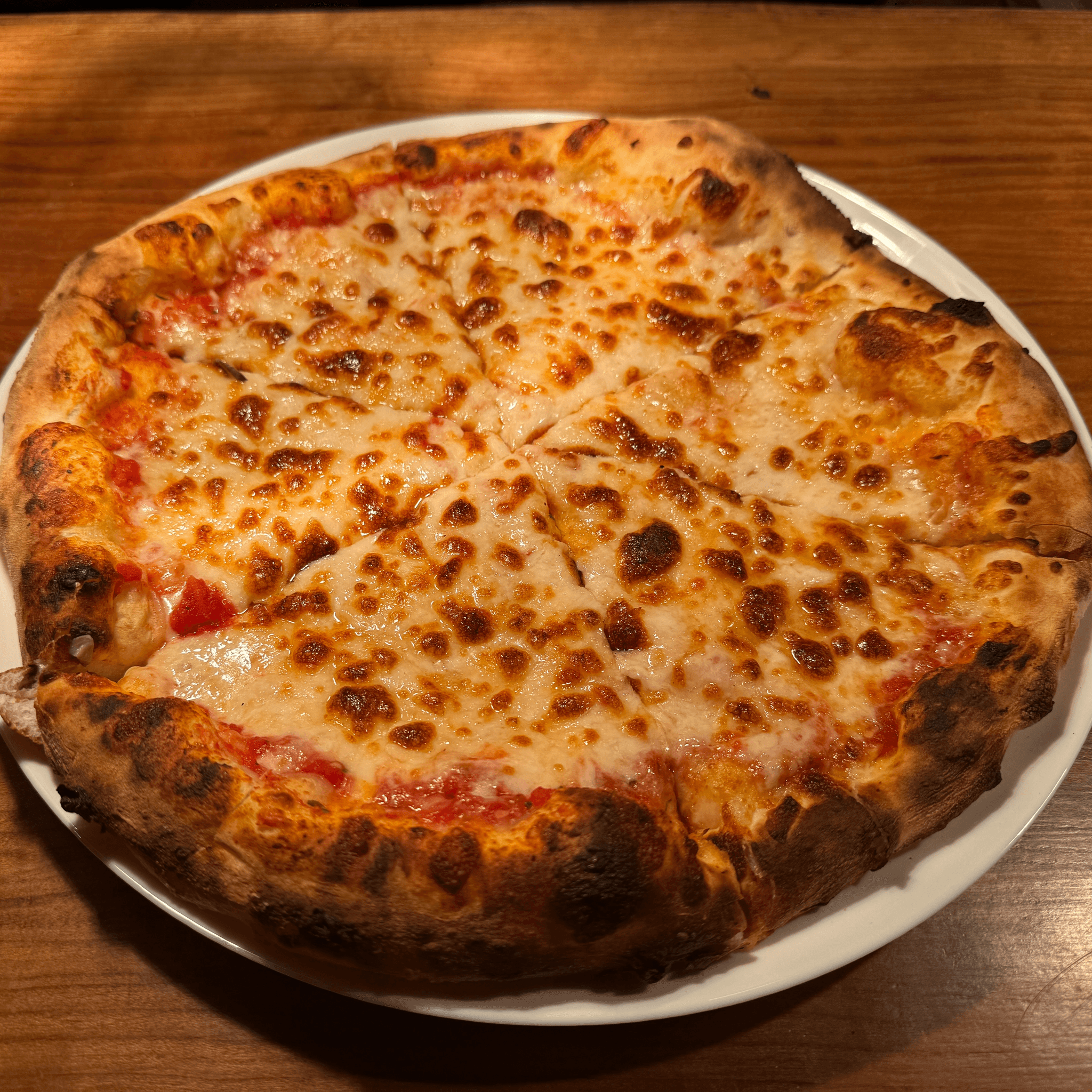 House Tomato Sauce, Fresh Mozzarella,Cecca Tomato Parmesan, Basil, Olive oil.