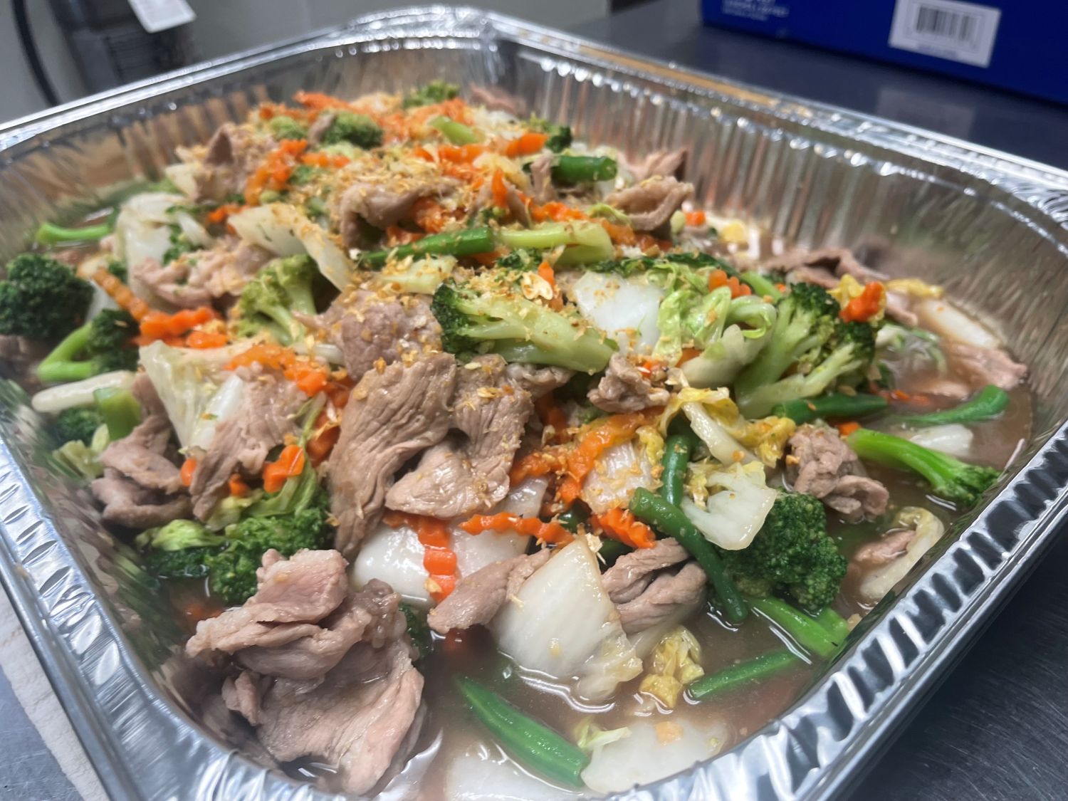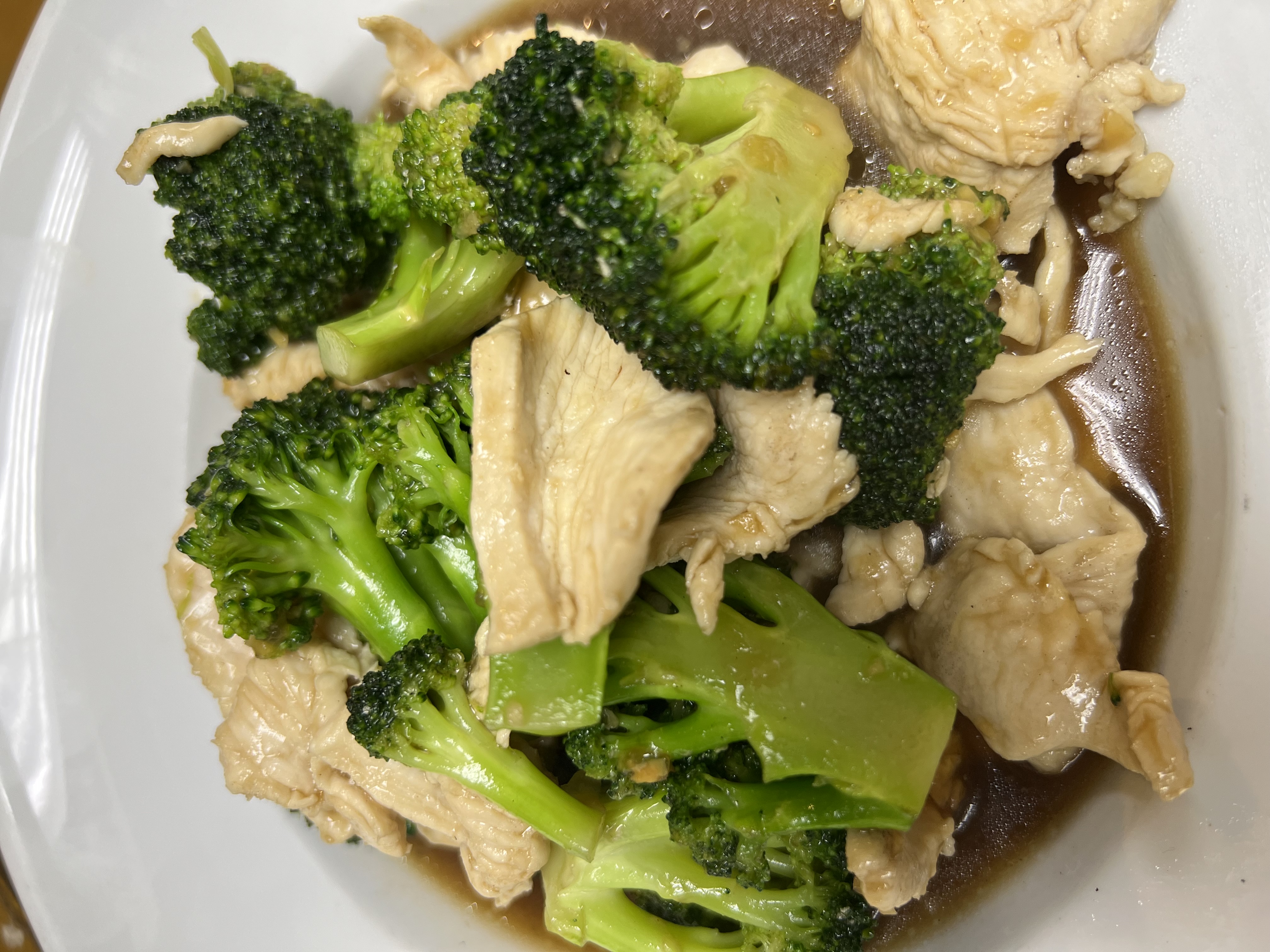 Choice of proteins stir-fried with broccoli, white pepper, and garlic in light brown sauce. Served with steamed jasmine rice.