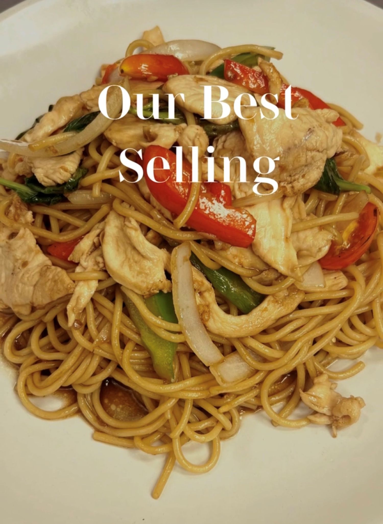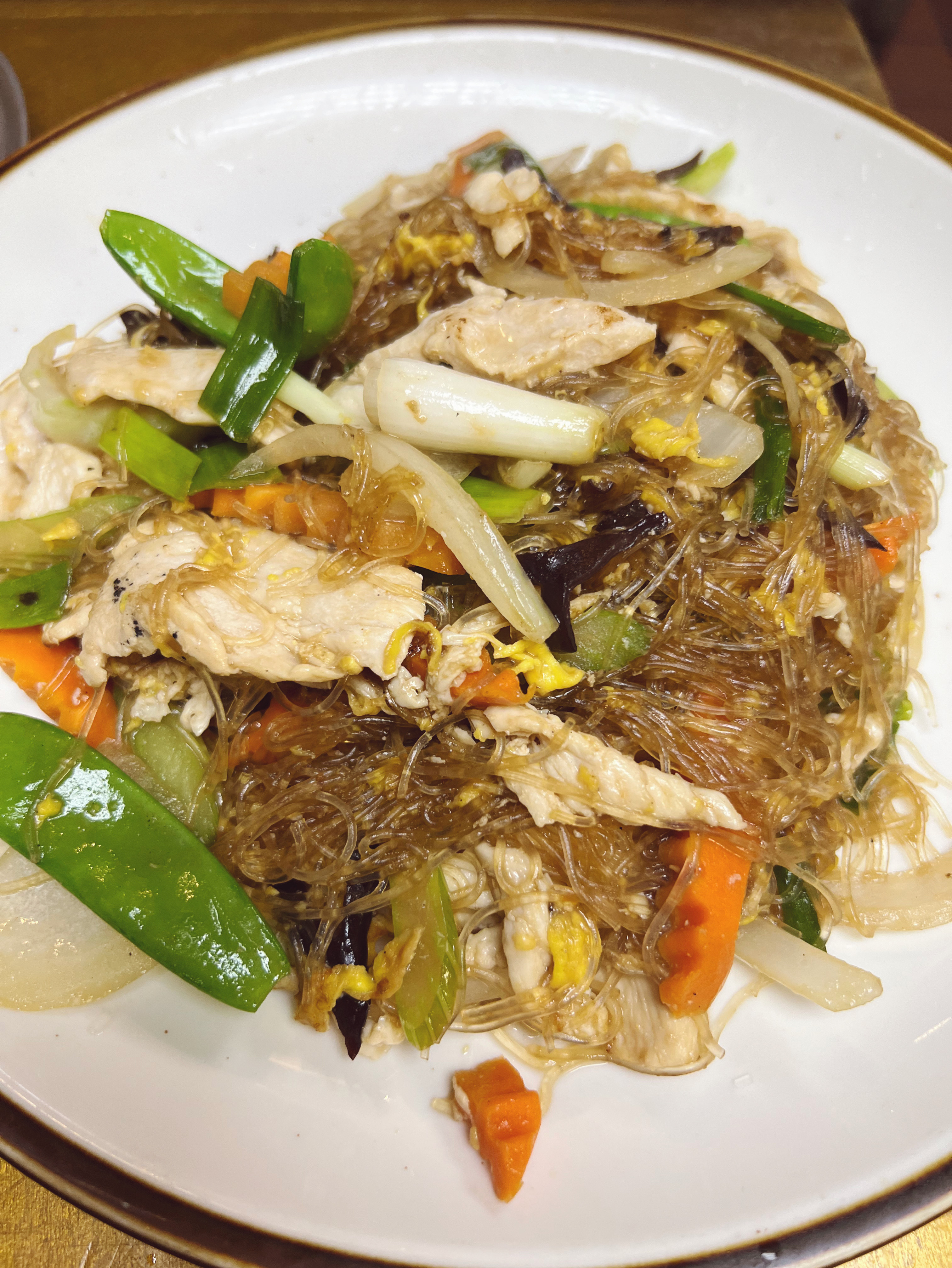 Cellophane noodle stir-fried with choice of proteins, egg, celery, onion, carrot, scallion, and black mushroom in savory soy-based sauce.