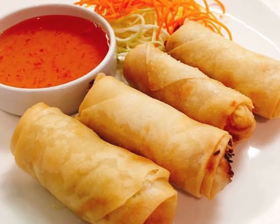 Crispy fried vegetable rolls filled with cellophane noodles, cabbage, and carrot. Served with sweet and sour sauce.