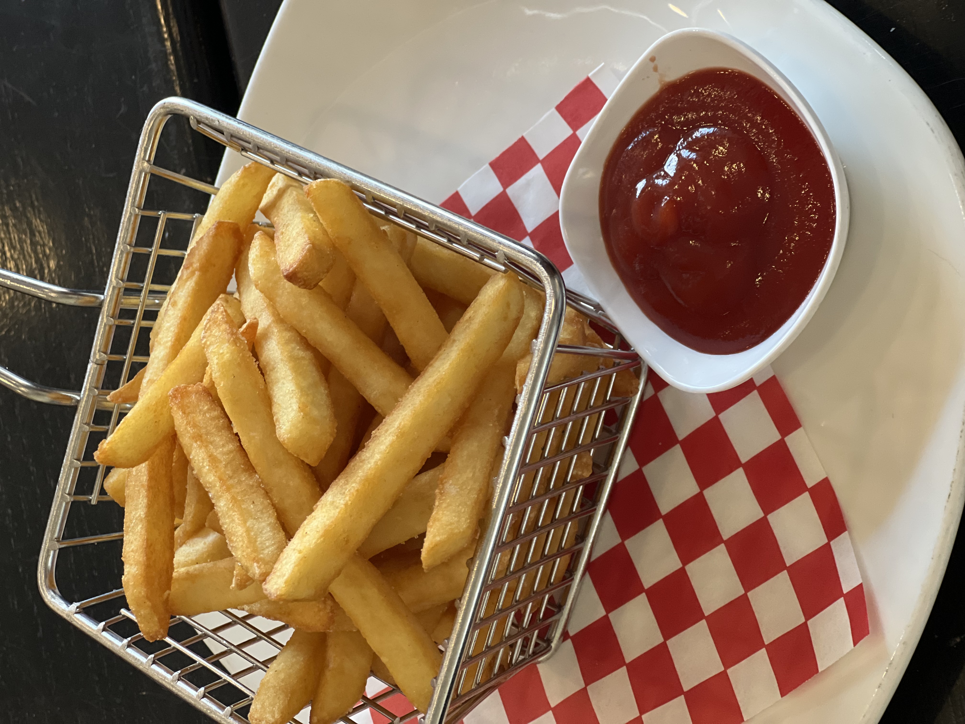 Crispy potato fries served with ketchup.