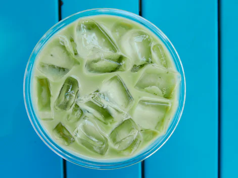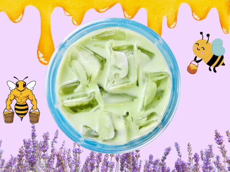 A classic matcha latte with a honey-lavender facelift / tastelift.