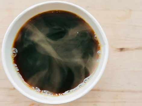 A cup of Jojo's Daily Drip Medium Roast coffee.