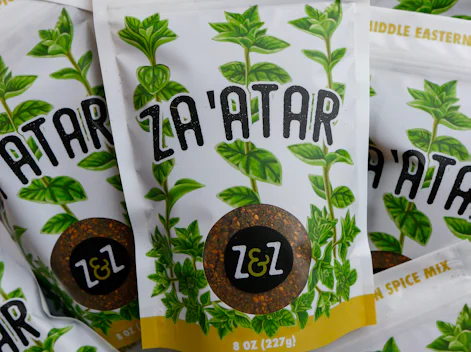 8oz pouch of Z&Z Za'atar. Z&Z Za’atar is bursting with the delicious flavors of all-natural wild thyme, sesame seeds, sumac, salt, and sunflower oil.