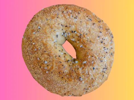 Roasted Veggie Cream Cheese, Bacon, Jalapeños and Crispy Shallots on a Cheddar bagel.