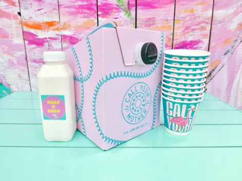 Serves 10. Includes 16oz Half & Half, sugars (regular, raw and Splenda), stirrers, cups and lids. IF YOU ORDER MORE THAN 5, PLEASE EMAIL HELLO@CALLYOURMOTHERDELI.COM