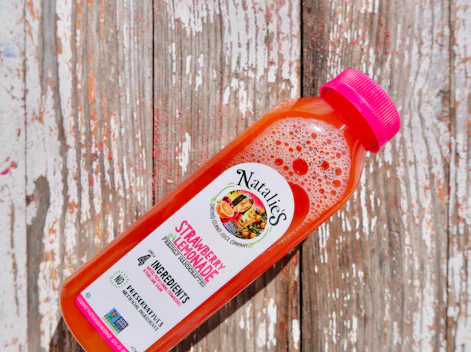 12oz of Natalie's Strawberry Lemonade- Natalie's uses only 4 ingredients: lemons, ripe strawberries, pure cane sugar and water. Rich in vitamin C & anthocyanins (antioxidant).