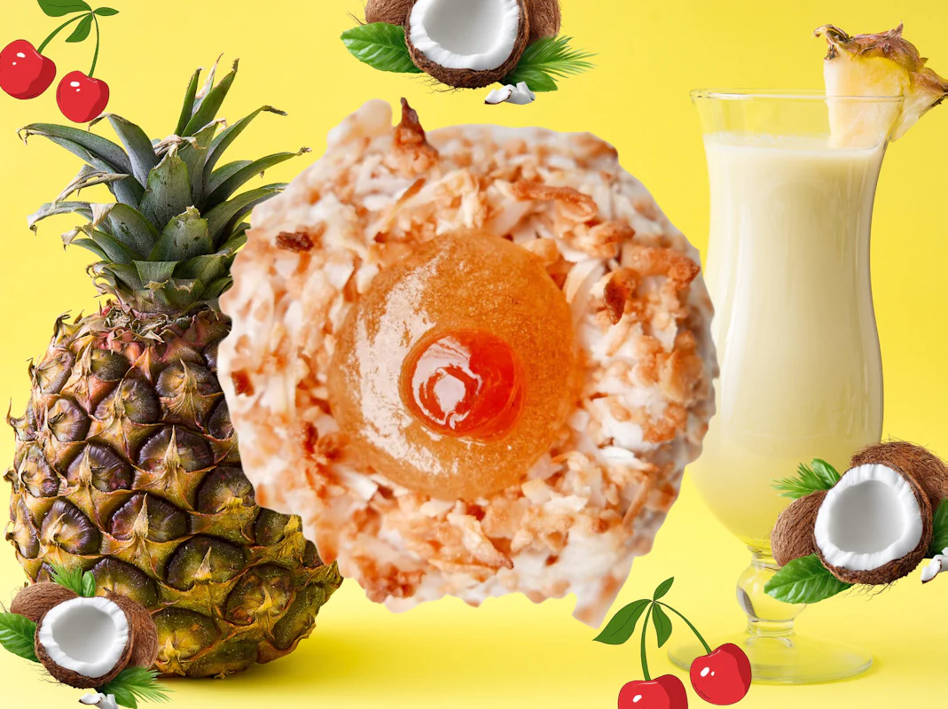 Peanut Butter Chocolate Drizzled Toasted Coconut Macaroon.