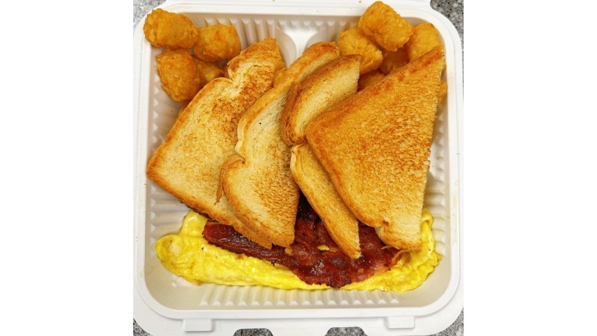 Comes with potato tots, toast, 2 eggs