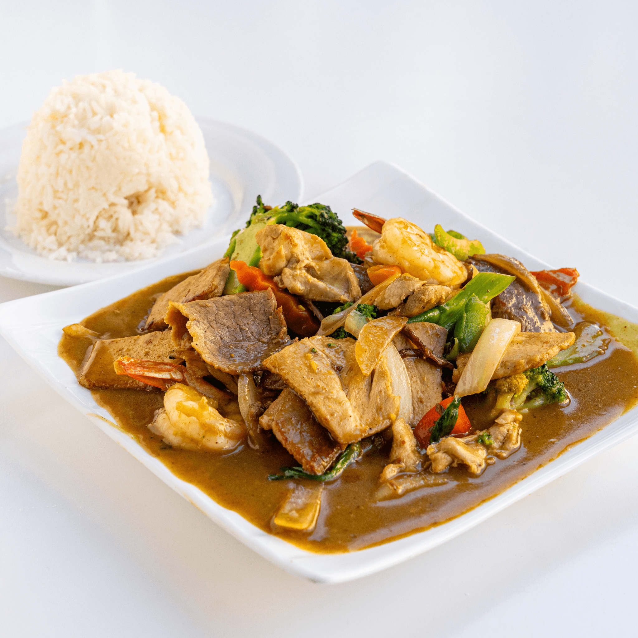 with Shrimp and your choice of Pork, Chicken, or Fried Tofu