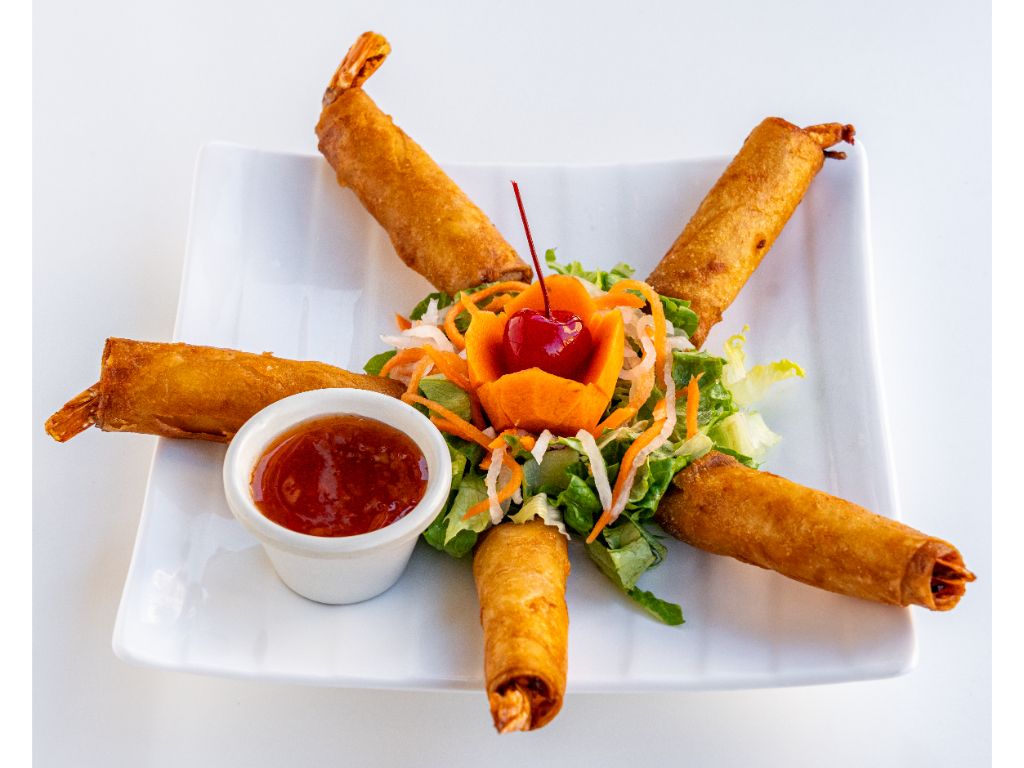 Two deep-fried rolls stuffed with shrimp, turkey, vermicelli, dried mushrooms and carrots. Served with our delicious homemade fish sauce.
