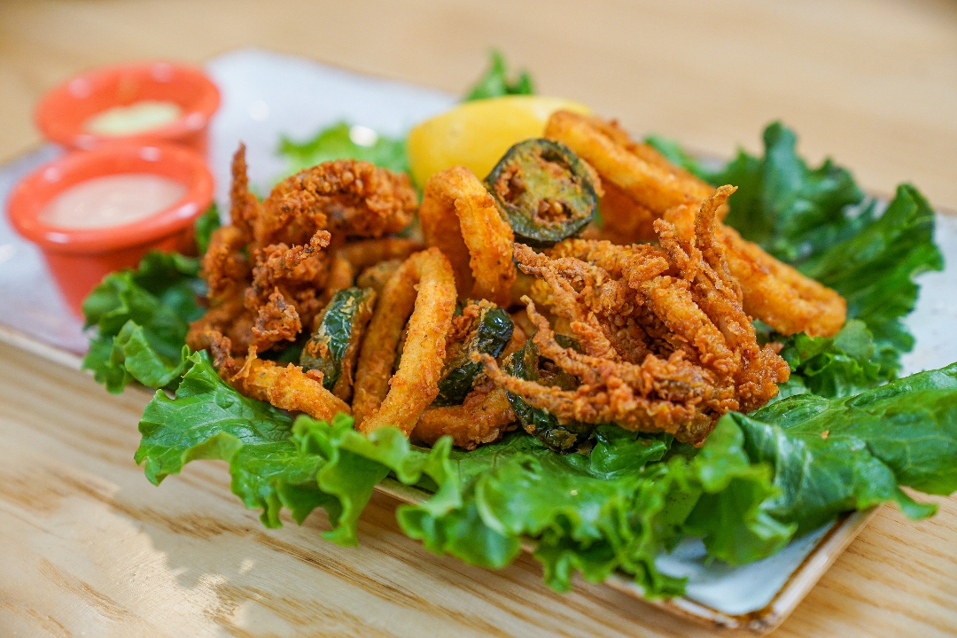 A generous serving of fresh tender squid lightly floured & then deep fried. Served with aioli sauce and mango habanero glaze.