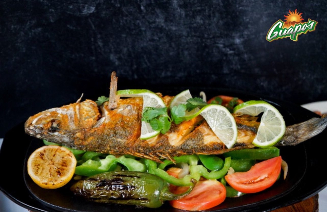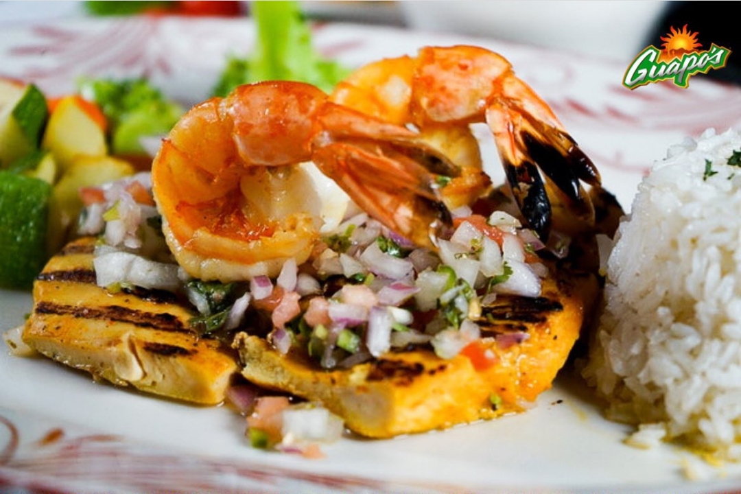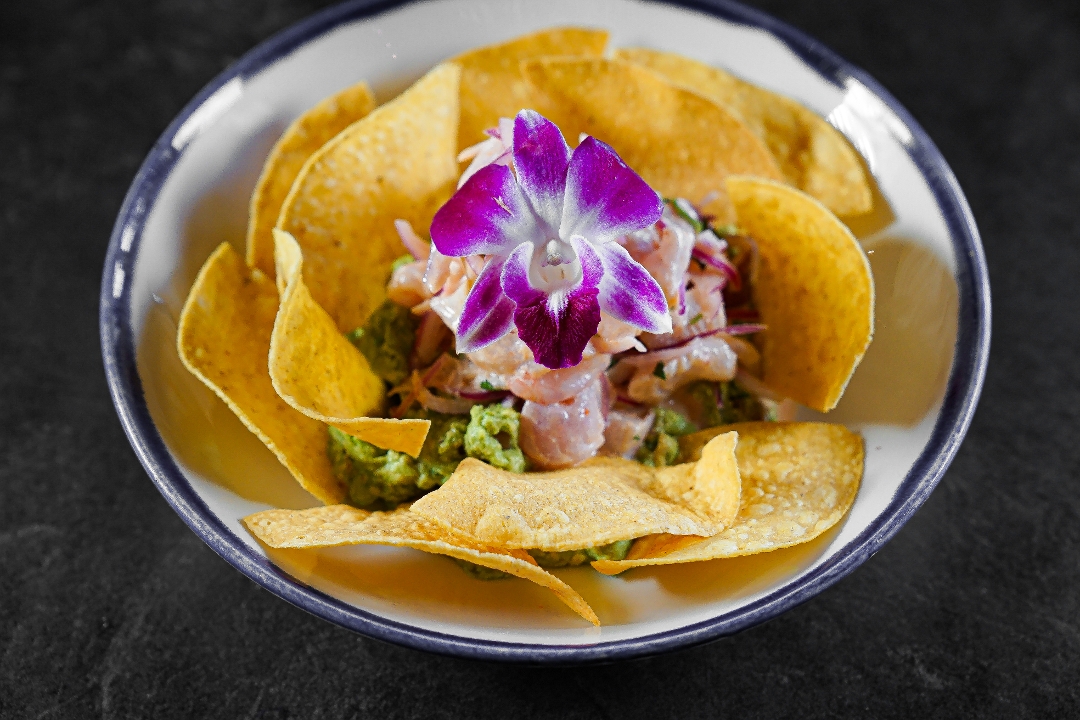 Our signature Guapomole with freshly marinated shrimp and fish on top.