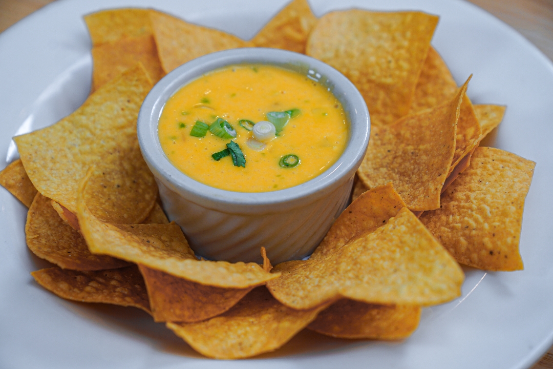 Three crispy slightly fried corn tortillas stuffed with shredded beef or chicken and Monterrey Jack Cheese. Served with guacamole, sour cream, and pico de gallo.