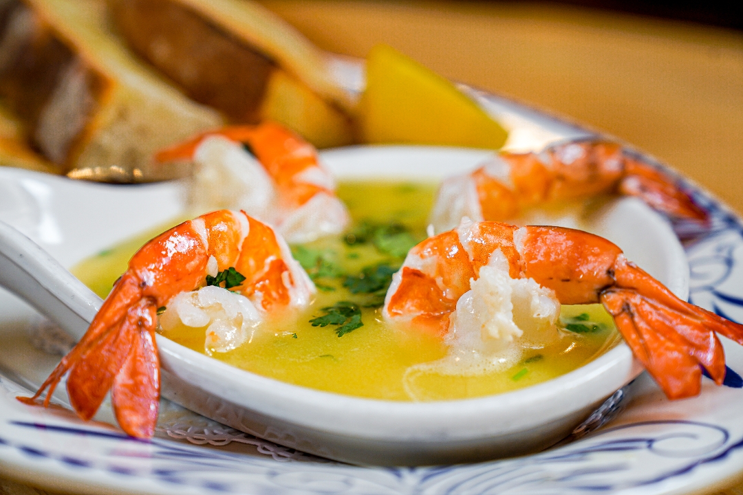 Shrimp sautéed with fresh garlic, Spanish herbs, spring onions, and white wine. Served with French bread.