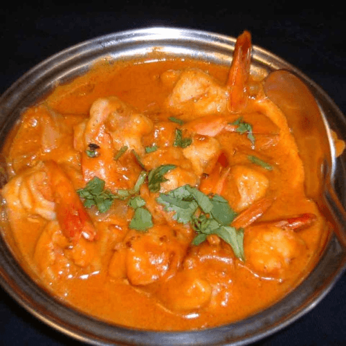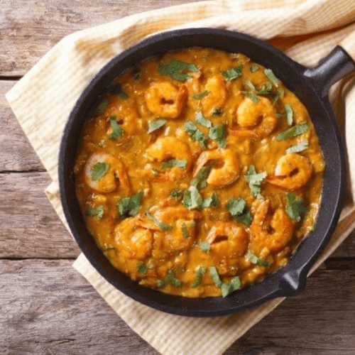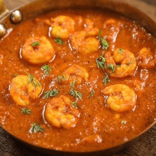 Jumbo shrimp sauteed with onion seeds, bell peppers, and tomatoes simmered in an authentic curry sauce
