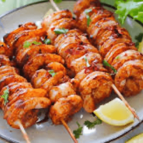 Boneless pieces of tender lamb marinated in herbs and spices, cooked in a charcoal clay oven.