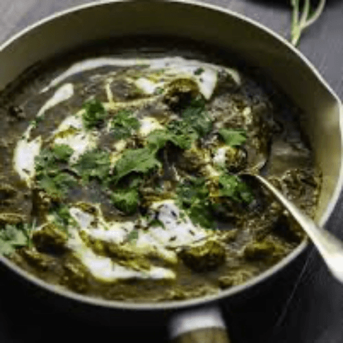 Chunks of boneless lamb cooked with spinach in our selected spices